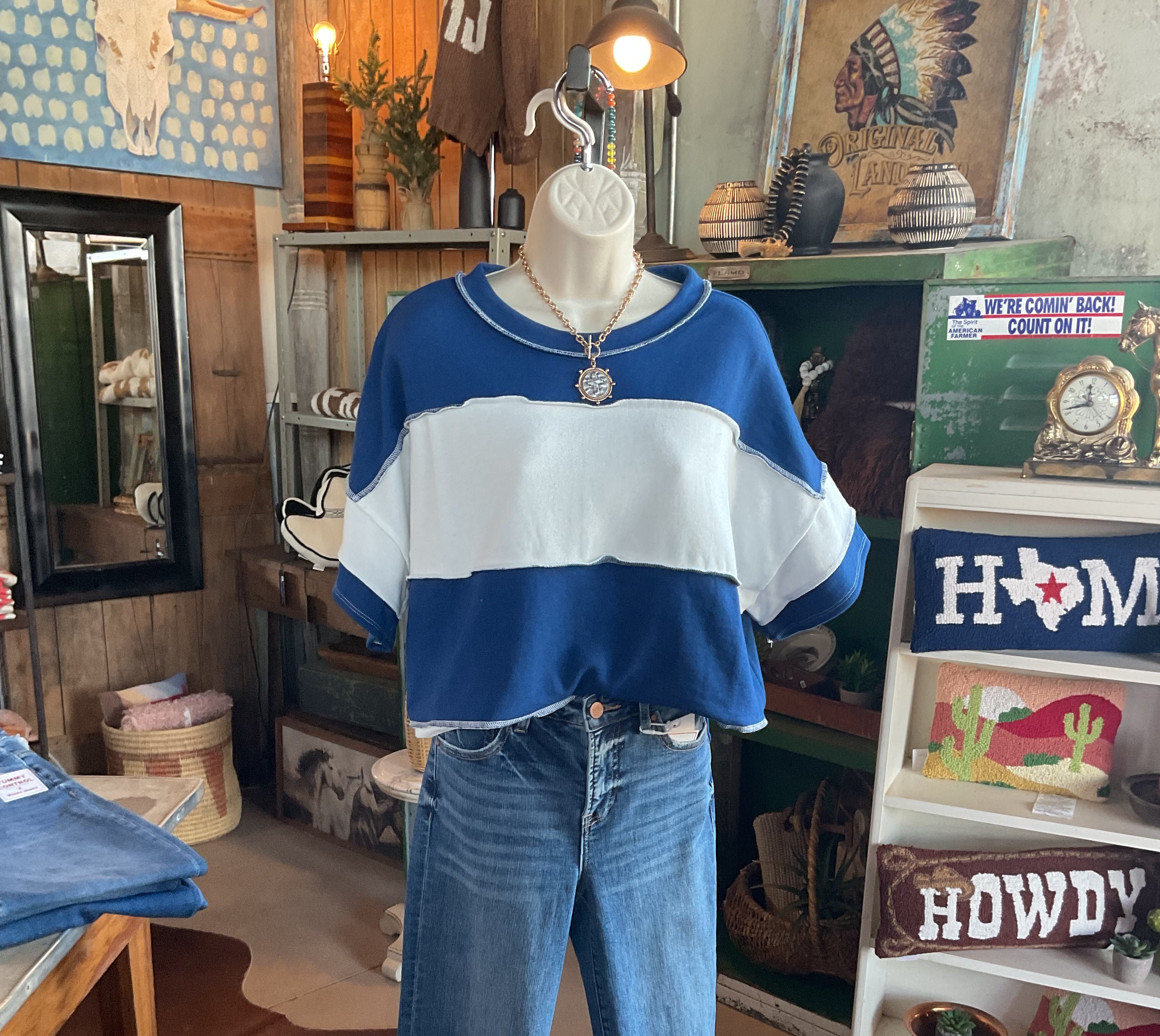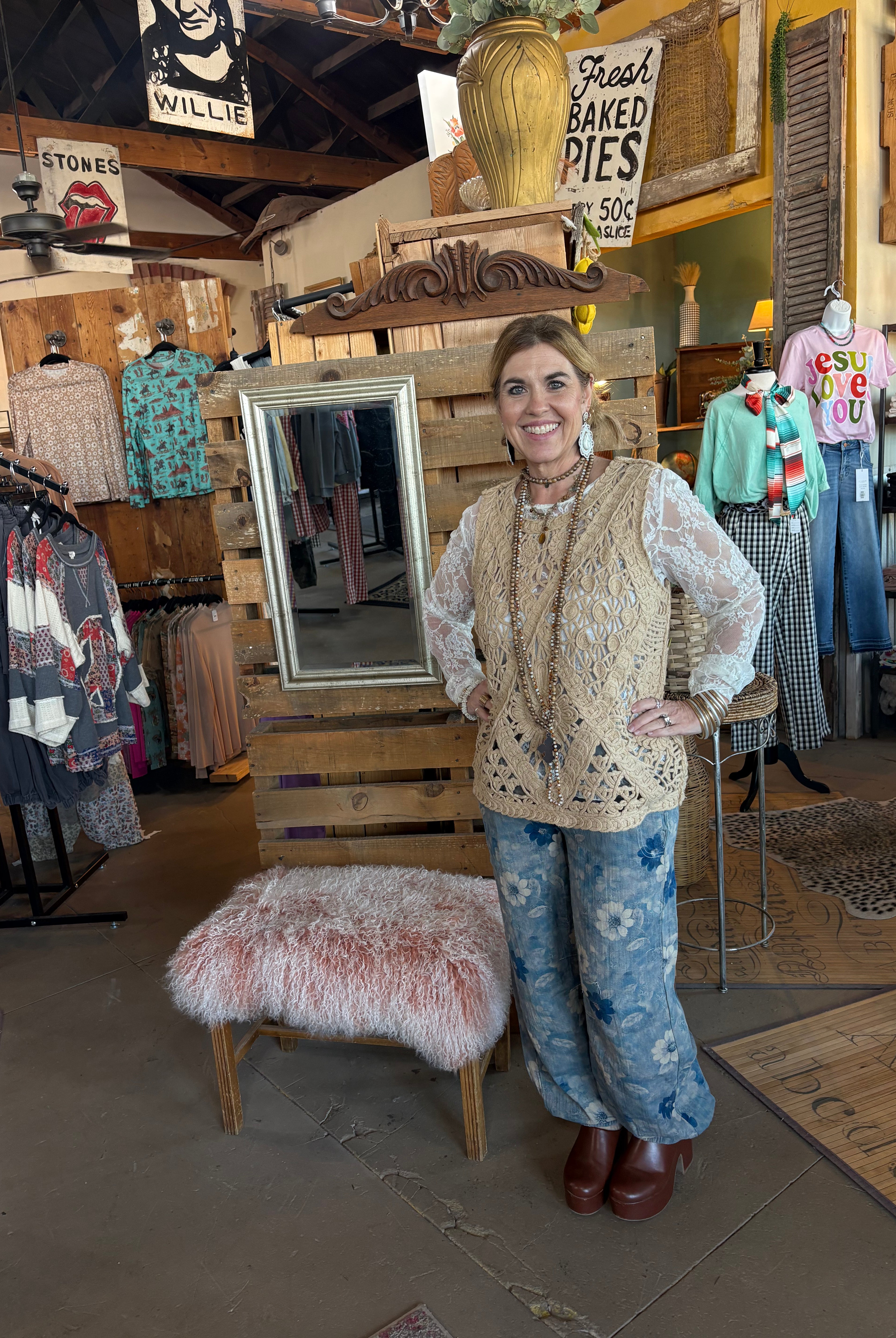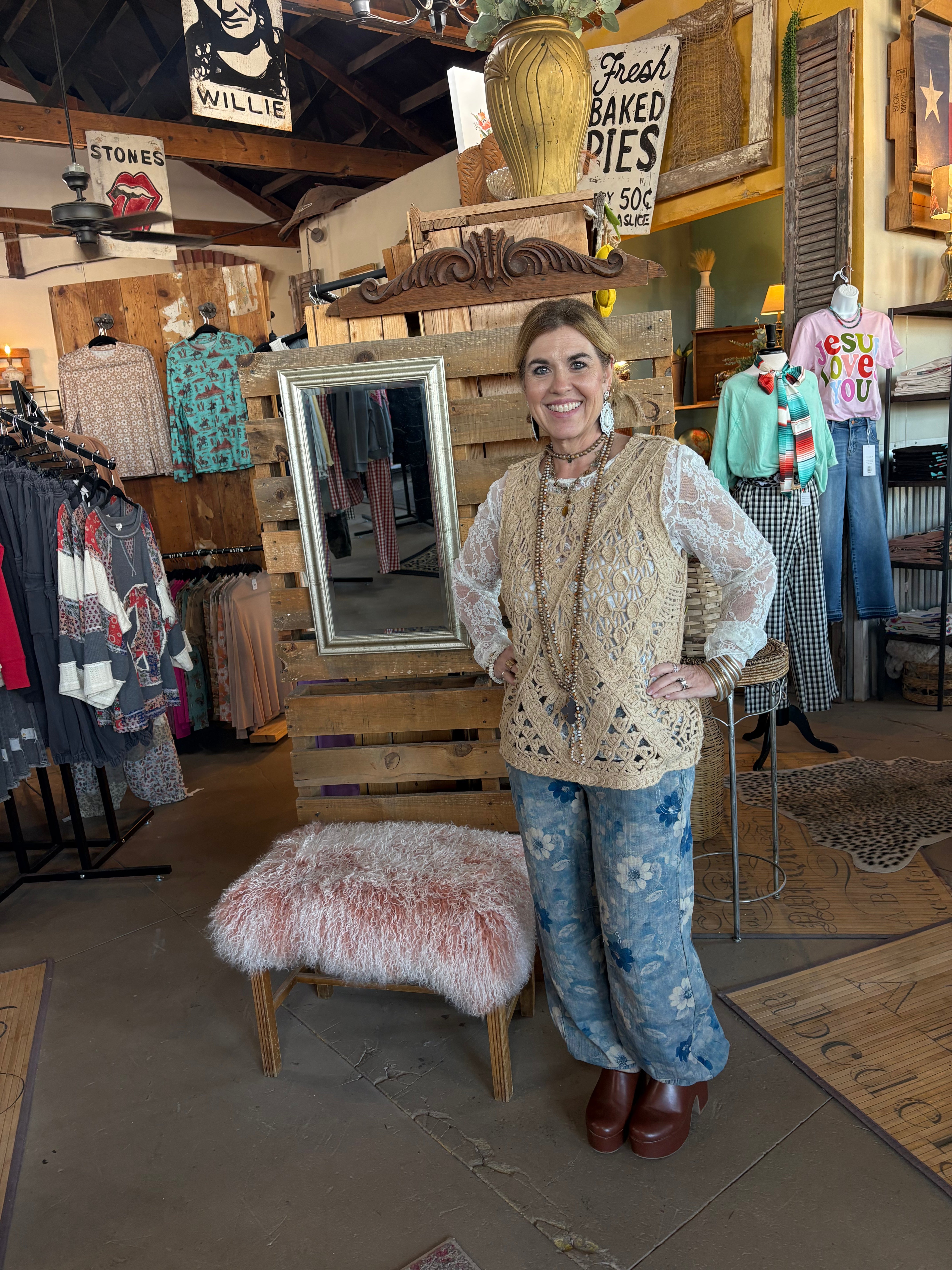 We stopped one night on the way to Lubbock to take shelter under their awning. The store was closed, but I took a peek inside. One our return trip, my husband stopped so I could go through. Wow, this place is amazing. Clothes, of which I bought several, jewelry, home decor. They have it all and you can order and have shipped. Great find in the middle of no-where.