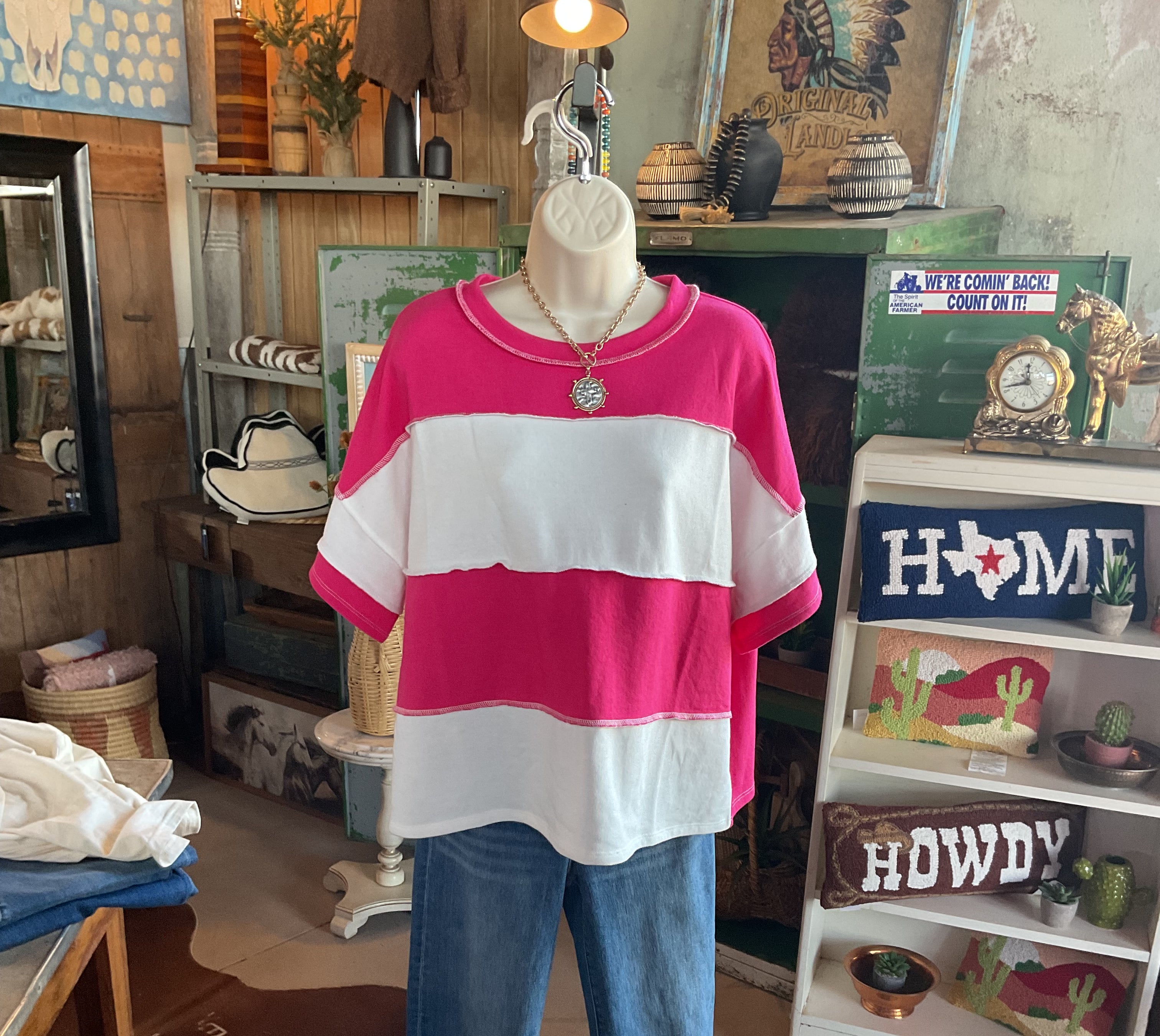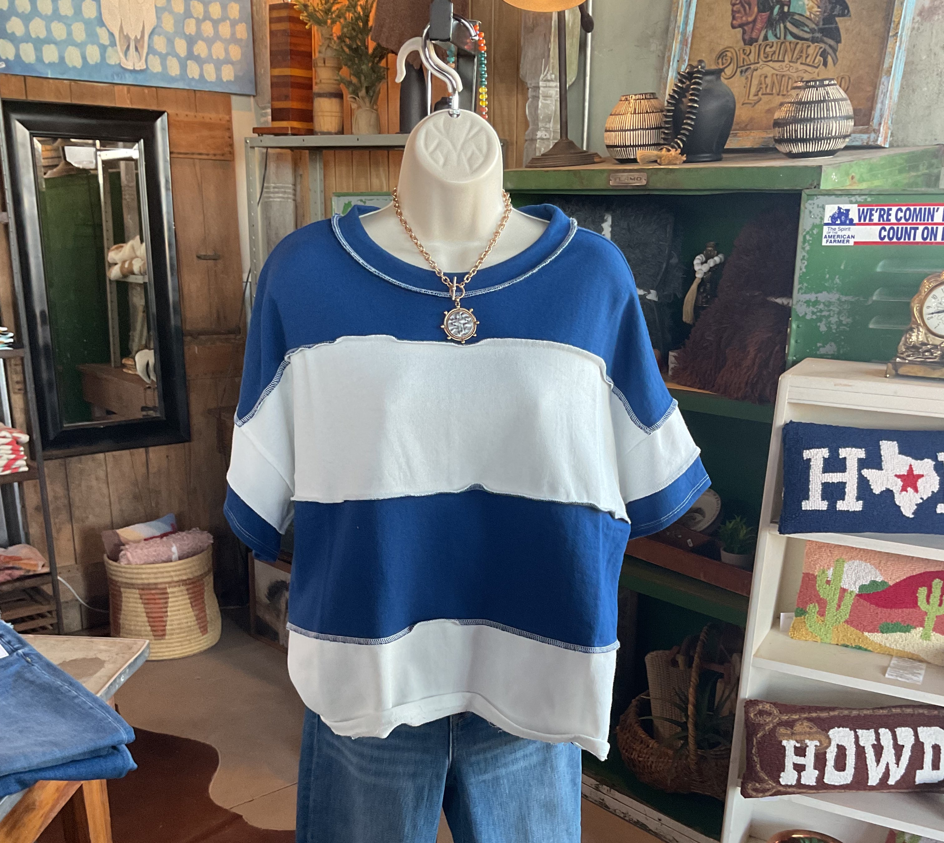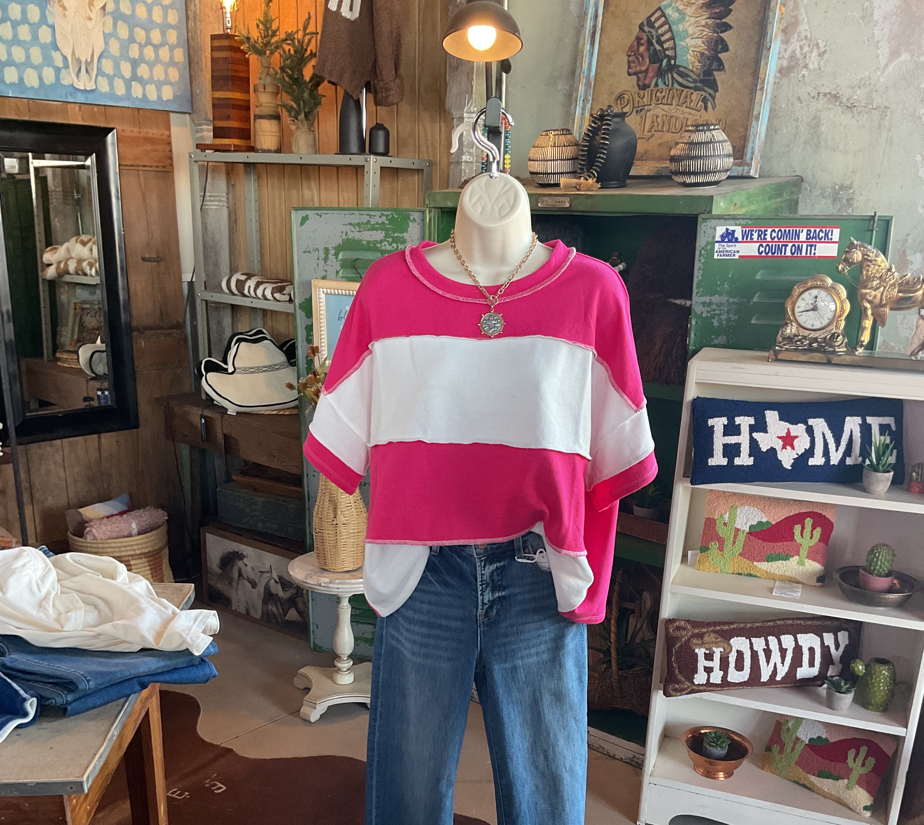 We stopped one night on the way to Lubbock to take shelter under their awning. The store was closed, but I took a peek inside. One our return trip, my husband stopped so I could go through. Wow, this place is amazing. Clothes, of which I bought several, jewelry, home decor. They have it all and you can order and have shipped. Great find in the middle of no-where.