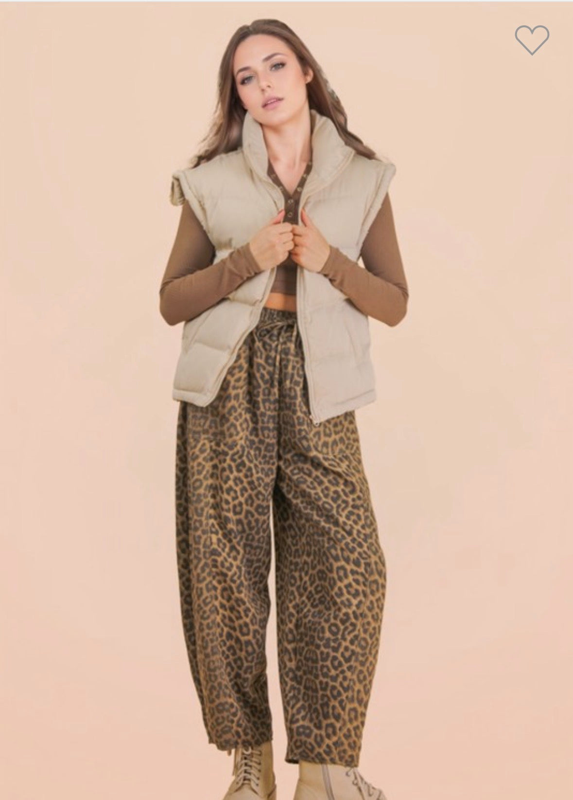 Meet your new wild card pants — comfy, cool, and full of personality. These leopard barrel pants give you that relaxed, slouchy shape customers are loving right now with an elastic waist, adjustable tie, and roomy pockets. They’re lightweight, easy to style, and perfect for layering with basics, sweatshirts, or a denim jacket.