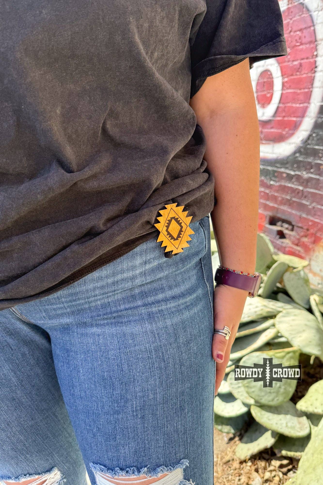Bring the bold with our Aztec Sky Scarf Slide — the perfect way to secure your wild rag with a touch of Southwestern flair. Each handcrafted leather slide adds texture and personality to your outfit, making it a true statement piece whether you’re dressing up for the rodeo or styling everyday western chic.