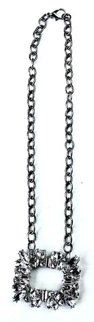 SHORT CHAIN W/BLING RECTANGLE NECKLACE - SILVER