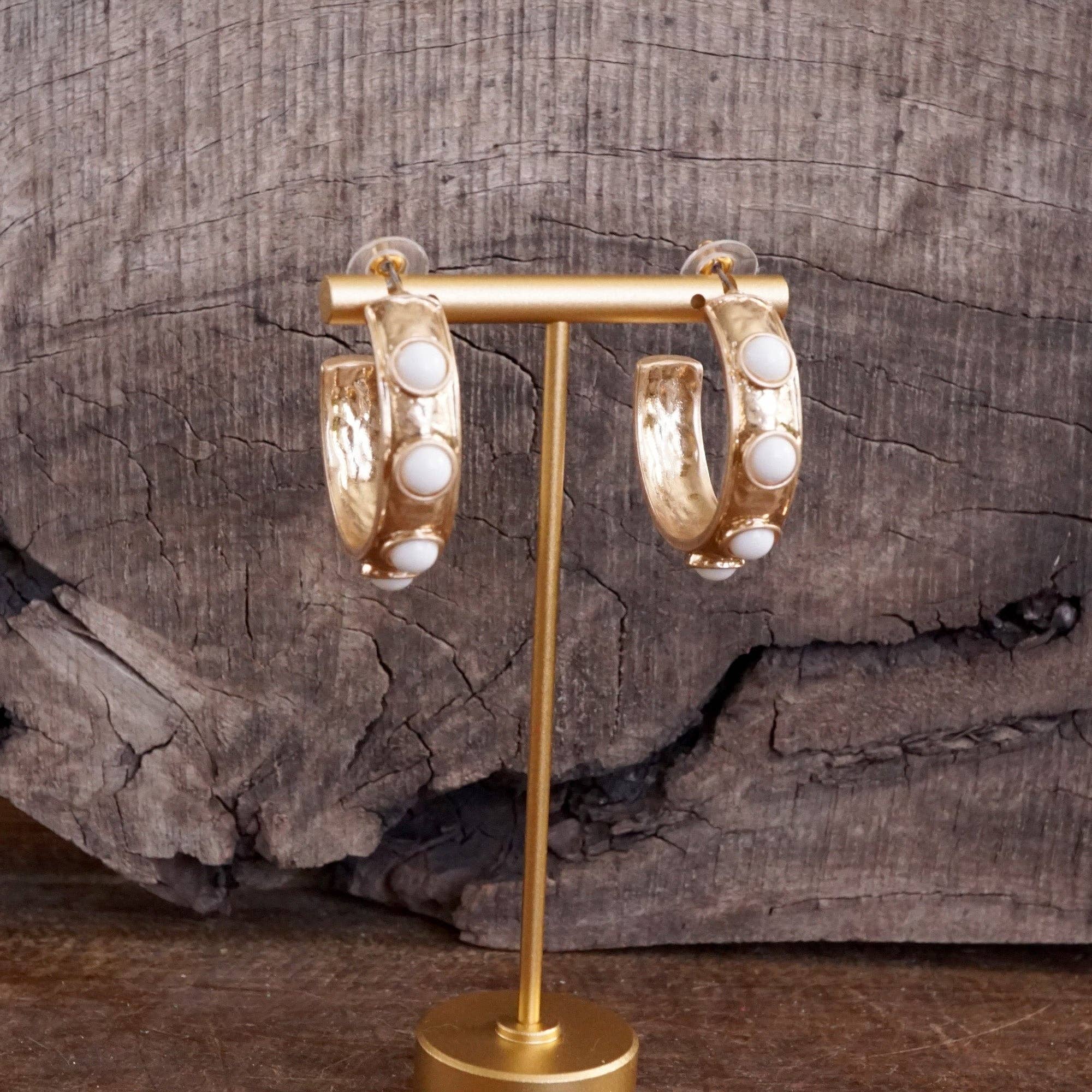A bold take on a classic hoop. These Jeweled Bubble Earrings feature an organic gold-tone finish with vibrant acrylic cabochons, adding texture, color, and charm to any look. Designed to pair perfectly with our matching Bubble Bangles or stand strong on their own.