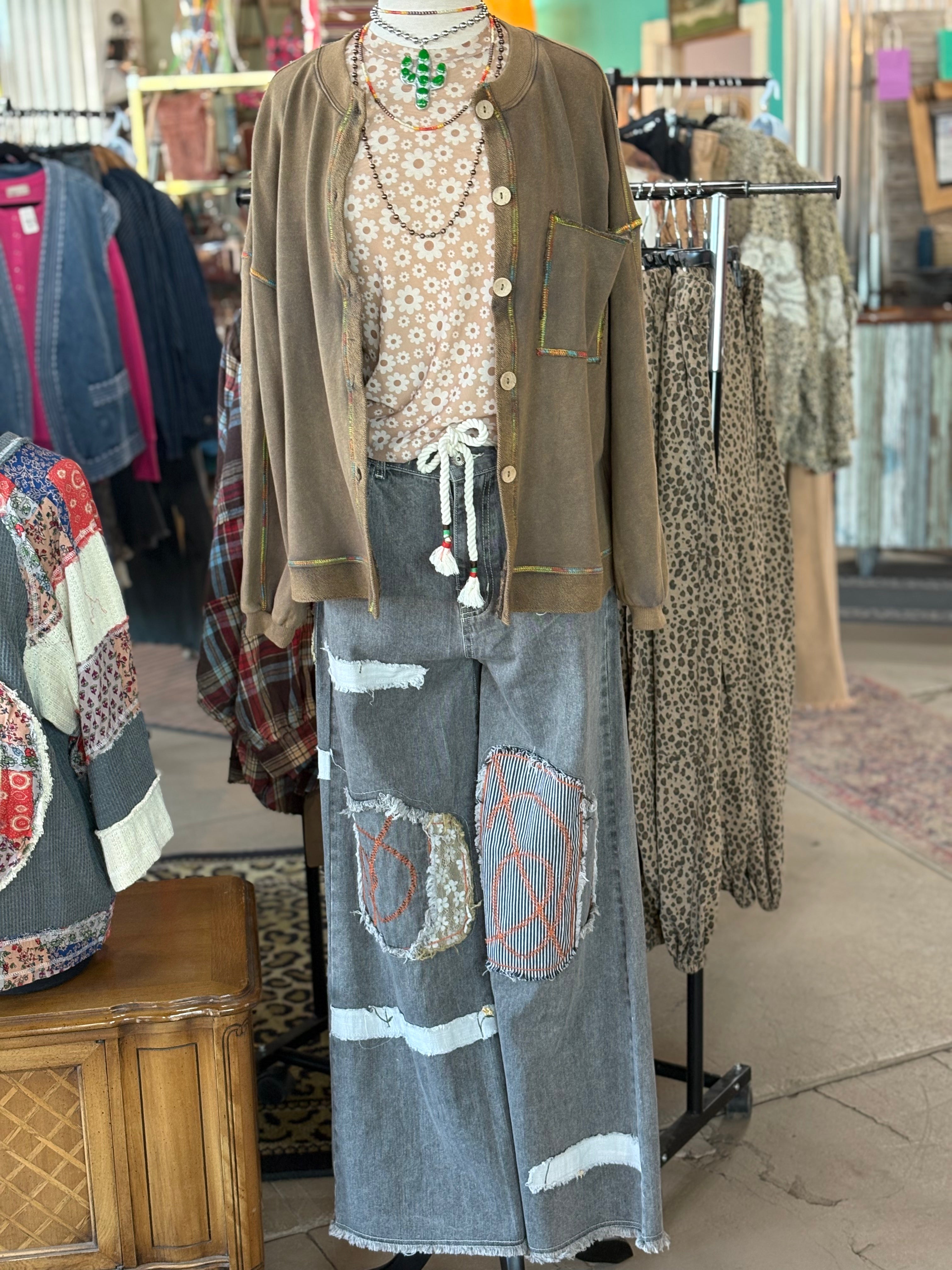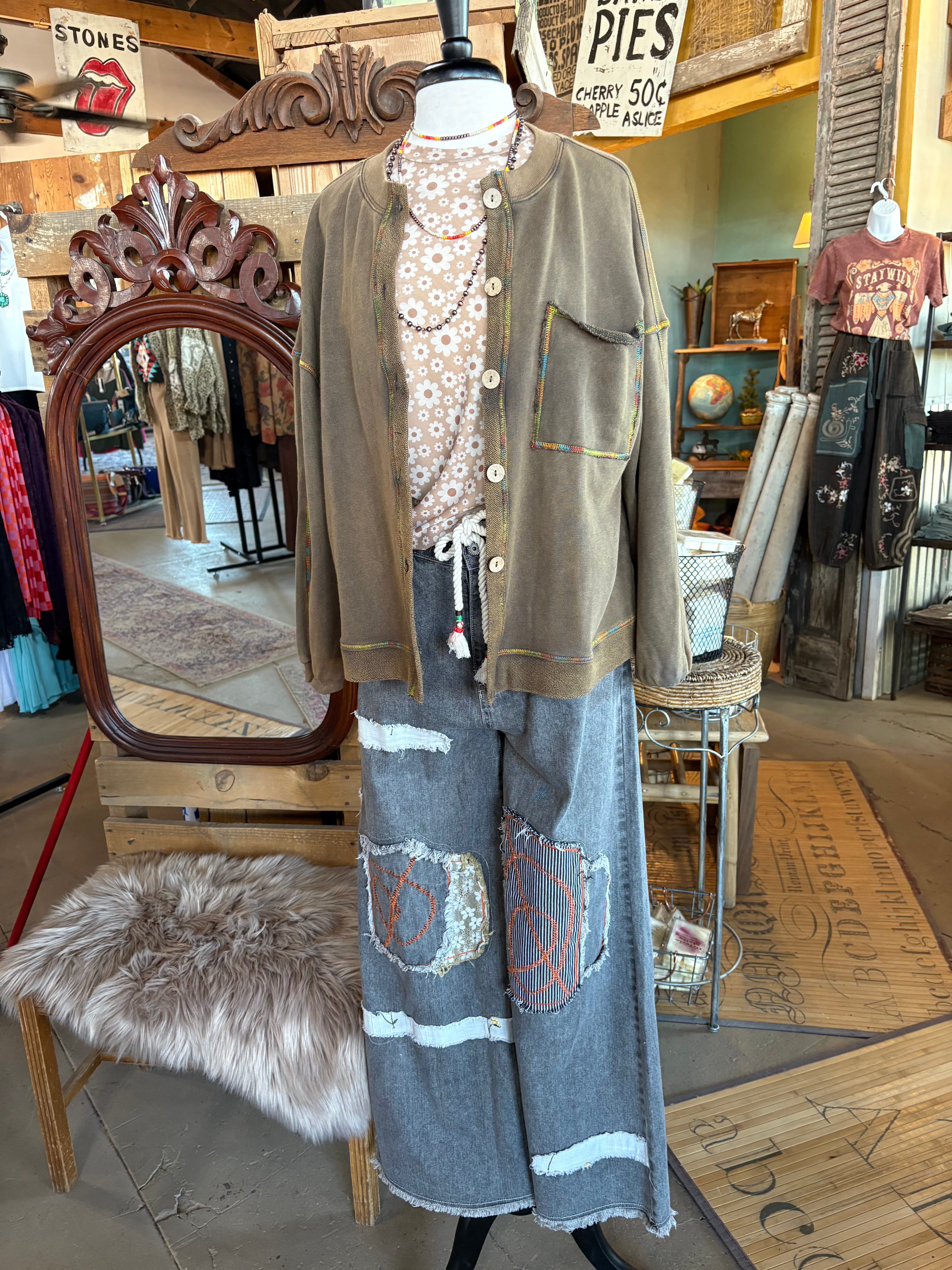 Model Styling: Shown layered over our Daisy Mesh Top with Peace Patch Denim Pants